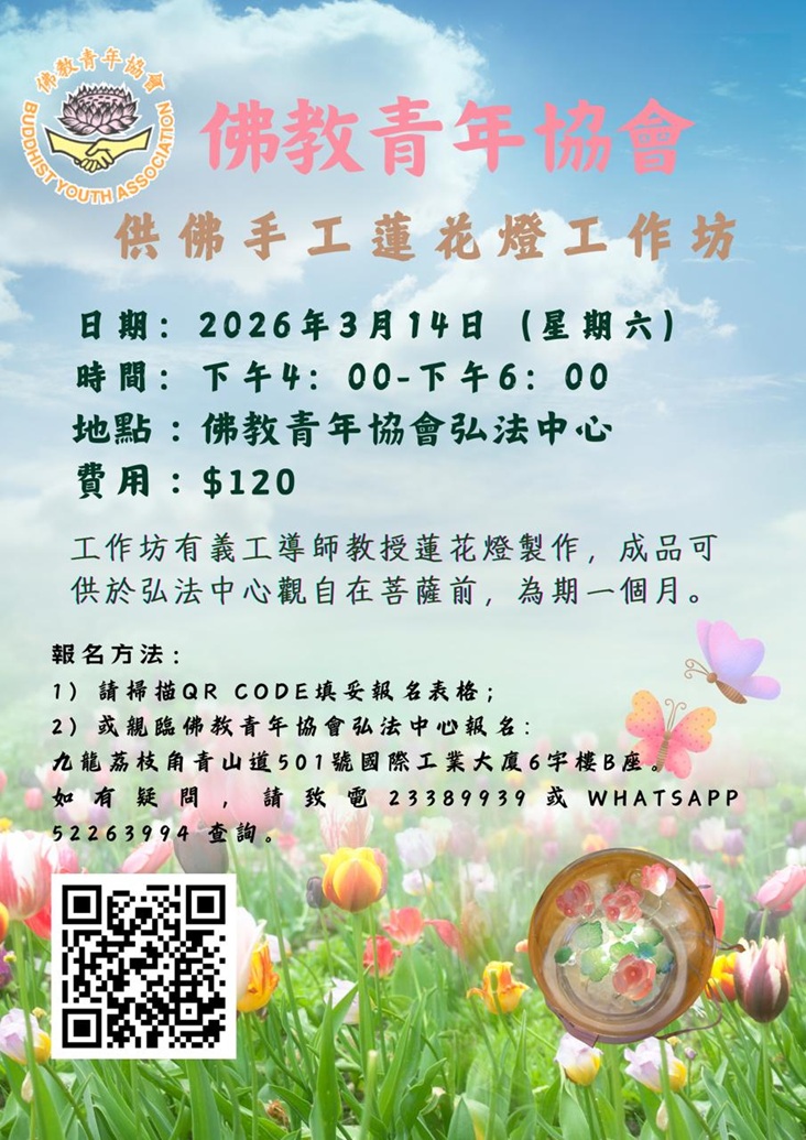 2026年2月9日(乙巳年農曆十二月廿二)星期一至2月28日(丙午年農曆正月十二)星期六,佛教青年協會弘法中心