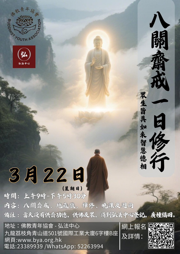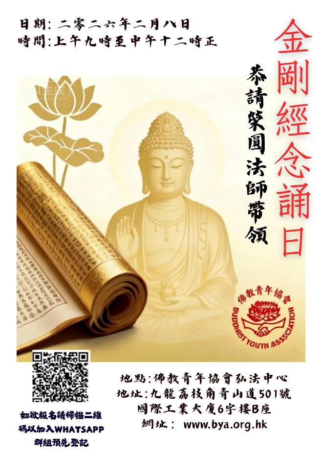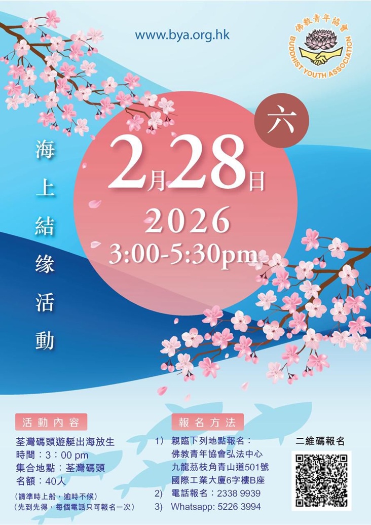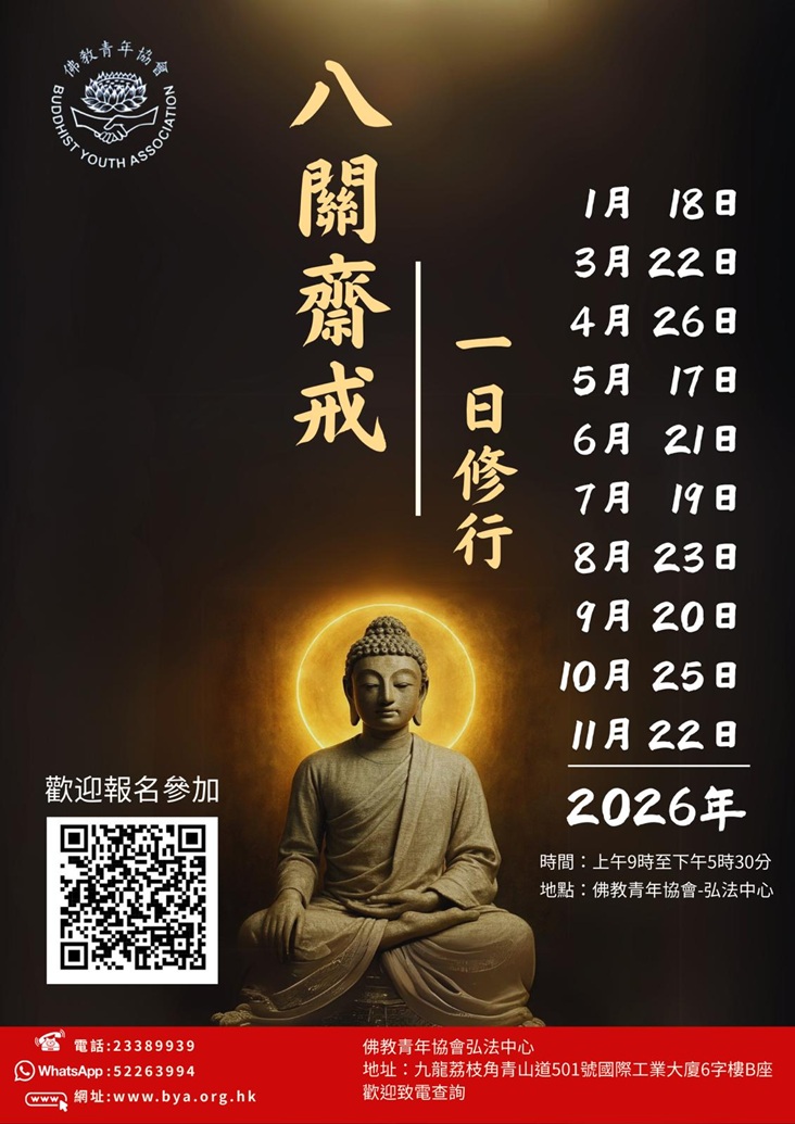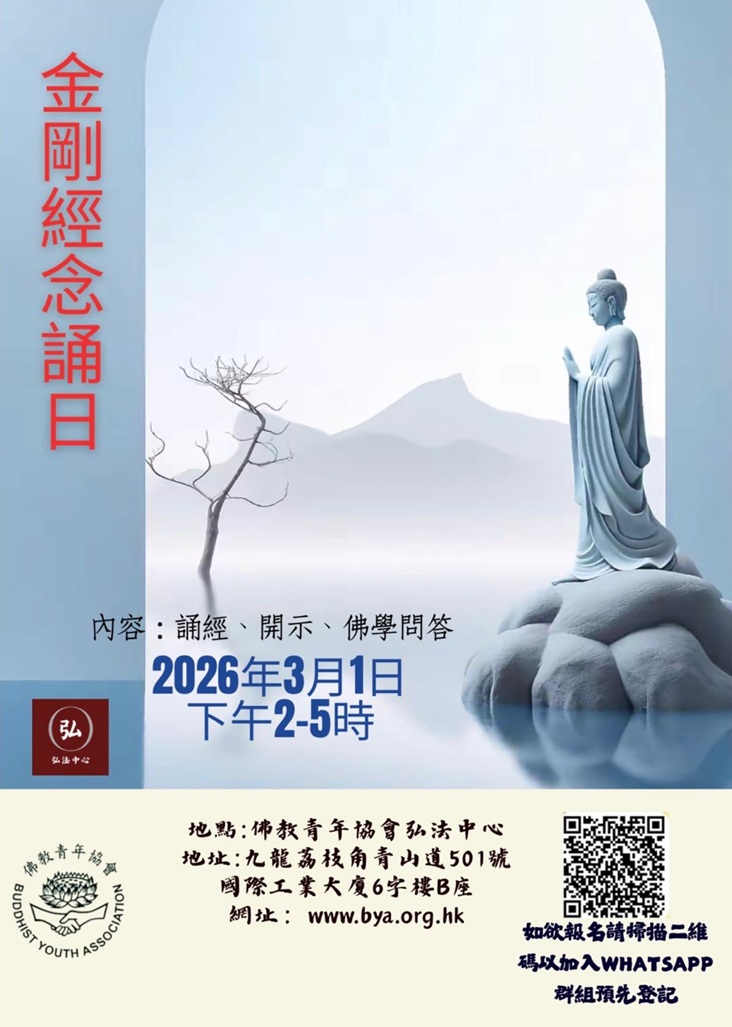 2026年2月9日(乙巳年農曆十二月廿二日)星期一至2月28日(丙午年農曆正月十二日)星期六,佛教青年協會弘法中心