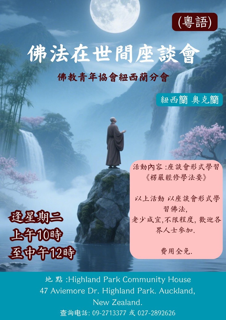 佛教青年協會紐西蘭分會電話:09-2713377 或 027-2892626